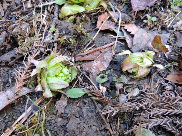 今年は例年になく厳しい寒波が何度も襲来し、東北や北海道はまだ今日も吹雪です。3月だというのに里山は冬枯れの景色が続いていますが、それでも目を凝らせば春の便りが見えてきました。ビオトープにアカガエルと東京山椒魚の卵があり、スミレやイヌノフグリがポツポツ咲き始めています。ヤマトリカブトの若葉が芽生えました。ニリンソウとそっくりなので毎年どこかで食中毒事件がおきています。トリカブトの葉をしっかり覚えてください。特筆すべきはシュンランです。絶滅危惧種ではありませんが、里山に何株も咲いていました。うれしいですね。かわいいイタチが物音に驚いたのがものすごい勢いで逃げていきました。運が良ければ年に数回出会います。