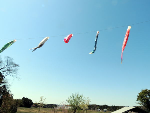 雲一つない快晴の青空の下、鯉のぼりが泳いでいます。子どもの日が過ぎたので本日撤去の予定でしたが、今月末に地元のNPO“いすみライフスタイル研究所“主催の「エコな暮らし方見学ツアー」の昼食休憩会場に里山をお借りしたいという話があります。それまでは歓迎のデコレーションとして掲揚し続けることになりました。同研究所のTさんがお見えになり、挨拶がてら上下つなぎのプロチックなスタイルで活動を体験しました。続々と集まる会員を見て「すごいですね」と感心していました。