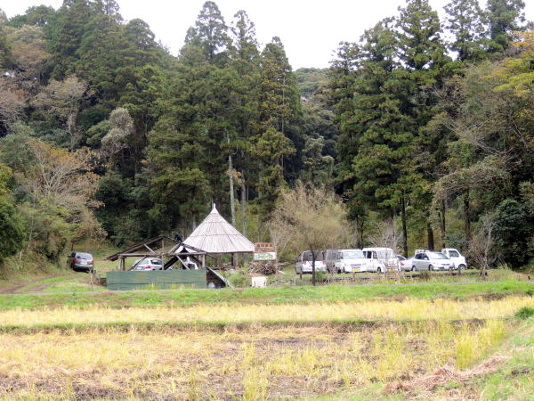 本日はいすみ市の「健康マラソン大会」と重なり、里山の周辺道路は交通規制で通れません。それで早めに里山に集合しましたが、昼食食材の買い出しは遠回りをせねばならず、センターで仕込んだトン汁をフィールドまで運ぶのにも大変時間がかかりました。昼近くになるとみな傘亭に集まって、まだか、まだかと首を長くしてやっと昼食になりました。本当は11:30にはできていたのですが里山に運ぶのに1時間もかかったことになります。