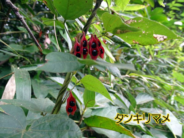 先月に引き続き、雨のため一周遅れの活動日になりました。日光では紅葉が始まったそうですが、房総では12月中旬にならないと見ごろになりません。それでもカラスウリの実は朱色に輝き、画像のようにタンキリマメがしゃれた色の実をつけており、季節は秋だと知らせています。作業は例によって草刈りで、今回は岬病院から見た正面通路脇の集中作業です。クズなどがだいぶ絡まり、アンズが埋もれそうですから救出。斜面なので足元に気を付けるようにと指示がありました。