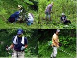 草刈りはアジサイロードの奥まで楽に通れるようになりました。あちこちに植樹した桜はMさんご夫妻の手入れでしっかり根付きました。アジサイの剪定をしている仲間もいます。それぞれ自分が気に入った植物の面倒をみる自由がこの会にはあります。