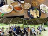 さて待望の昼食はSさん渾身の料理=トマト味野菜たっぷり豚肉入りブイヤベース。野外料理でこれほどの料理が出てくるのは驚きです。30人分を前日から仕込み、当日も朝からセンターでかかりっきりで作業しました。ほかにジャガイモの煮物、ラッキョウの漬物、紫玉ねぎとズッキーニのサラダ、タクアンなどその多くが差し入れですから、昼食費はなんと200円。それぞれ誰からの差し入れだとの紹介があって拍手があったのも良い習慣ですね。紹介し忘れた人はいなかったでしょうか。もしいたら名乗り出てください。尊敬しても出しゃばりなどと思う人は絶対にいないはずですから。