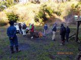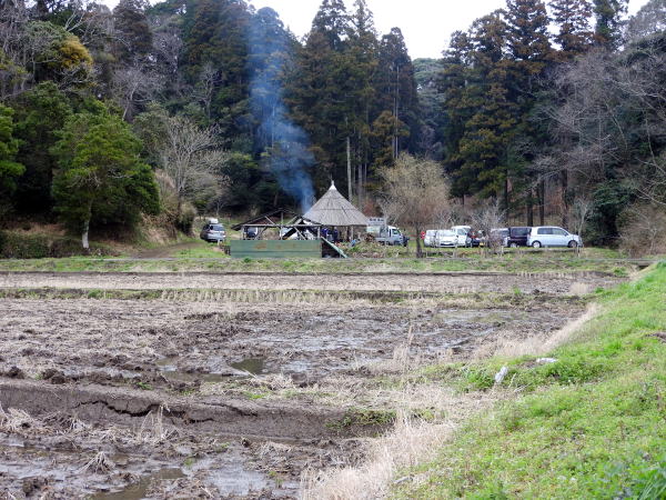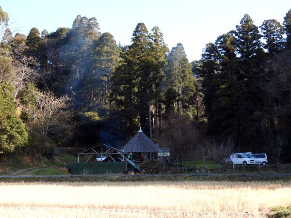 寒いから今日の人数は少ないかなと思っていたら、次々に会員の車が集まり、駐車所は満杯。①時間的に余裕のある人はセンターに車を置いて、乗り合いで里山に来る ②草刈機等運搬用軽トラと草刈り機などは傘亭前の梅手前に置く、などの工夫が必要のようです。